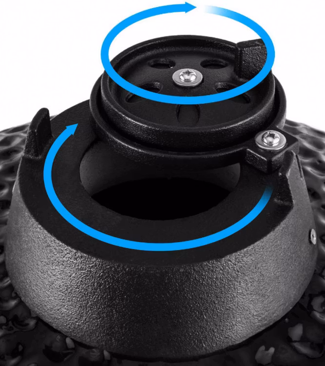 Med bottenventilen och toppventilen kan man enkelt styra så man får en jämn låg temperatur för "Low & Slow"-bbq eller öppna upp spjällen och grilla i maxvärme.
