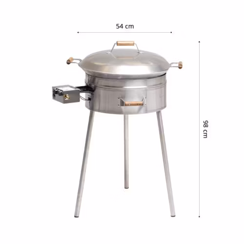 PRO-545 woksettet är idealiskt för ett hemma-hos bbqparty eller mindre catering events med 10 – 20 kunder. Lätt att ställa upp liksom demontera och enkelt att vid behov transportera i alla vanliga bilar. Den robusta konstruktionen med sitt unika tredubbla vindskydd, en kraftfull brännare och en riktig wokpanna är en mycket väl fungerande enhet.