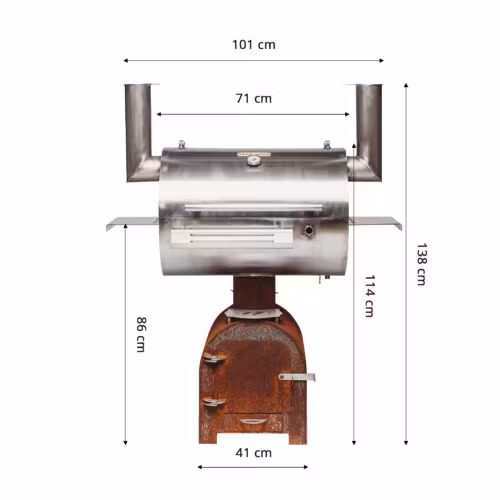 - Rökgrill är tillverkad av 3 mm rostfritt stål, vikt 95 kg (alla delar)