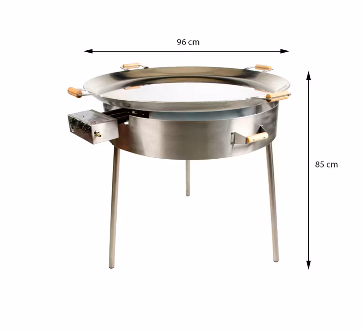 Denna vår största häll, nästan 1 meter i diameter i rostfritt stål är mycket populär bland cateringkockar och restaurangkockar. Stekhällen används idag av hundratals företagare i Skandinavien, Finland, England och Baltikum, lätt att frakta i vanlig personbil, snabbt monterad. En robust konstruktion och en kraftfull brännare under dentjockbottnade (5 mm) pannan som med sin kanthöjd på hela 50 mm och elektrisk tändning är klart högpresterande. Den möjliggör snabb framställning och servering av mat till hundratals ätande kunder.